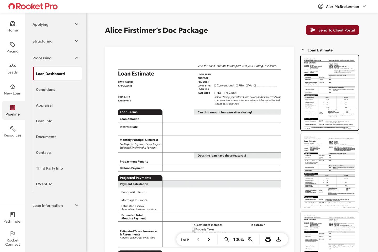 My initial designs included a preview page where brokers could review the new disclosure package before manually sending it to the client portal.